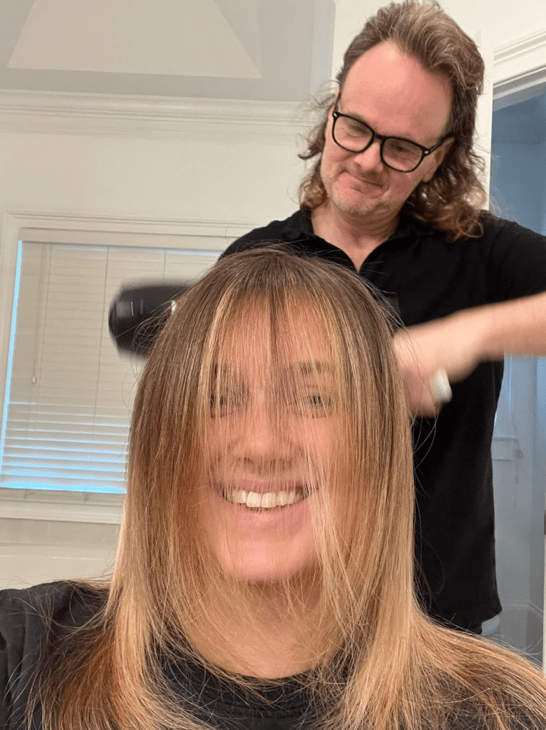 This is the first time I’ve ever had full-on ‘bang’ bangs. An awesome and unconventional flex I have been blessed with since I entered Earth is that my father is a hairdresser. And recently, my mother started coloring hair and is working on getting her cosmetology license, making it even more convenient for me to get fresh color. Whenever I want a haircut or some fresh styling, we either head to the kitchen counter or my parents’ bathroom with the necessary supplies and they work their magic. They’re both creative geniuses, so much so that my dad came up with the catchy and truthful phrase, ‘bathroom bangs’ that I’ve used to title this post and caption the accompanying Instagram post. This has made taking action on how I believe making noticeable changes to your hair to be a symbol of new beginnings much easier (and financially possible 🙂 ). The most extreme instance of living out this truth was when I dyed my hair beach blonde and chopped it a little below my collar bones before I started my freshman year of college. Change can be fun!