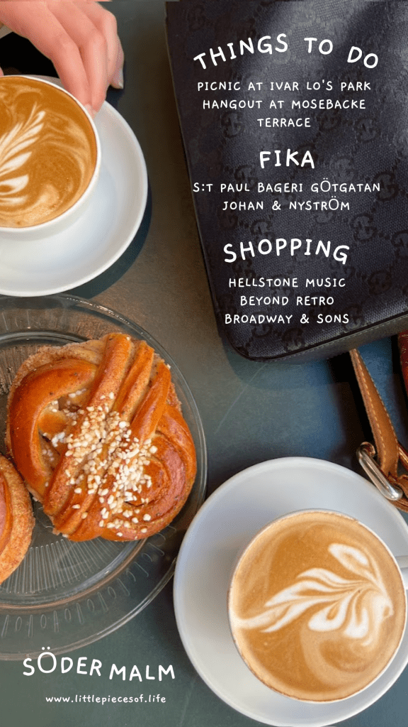 If Östermalm is Manhattan, Södermalm is Brooklyn’s equivalent. Home to rolling hills, pop-up shops, and people of all ages, Södermalm is the place that encapsulates Stockholm’s eclectic side best. Emma and I would venture to this area to do our laundry at a laundromat, spend hours surveying vintage stores for hidden treasures, and take a sack full of cheese and crackers to a park situated on the top of a hill so we could watch as the sun started to set on Gamla Stan. The things I would do to go back.