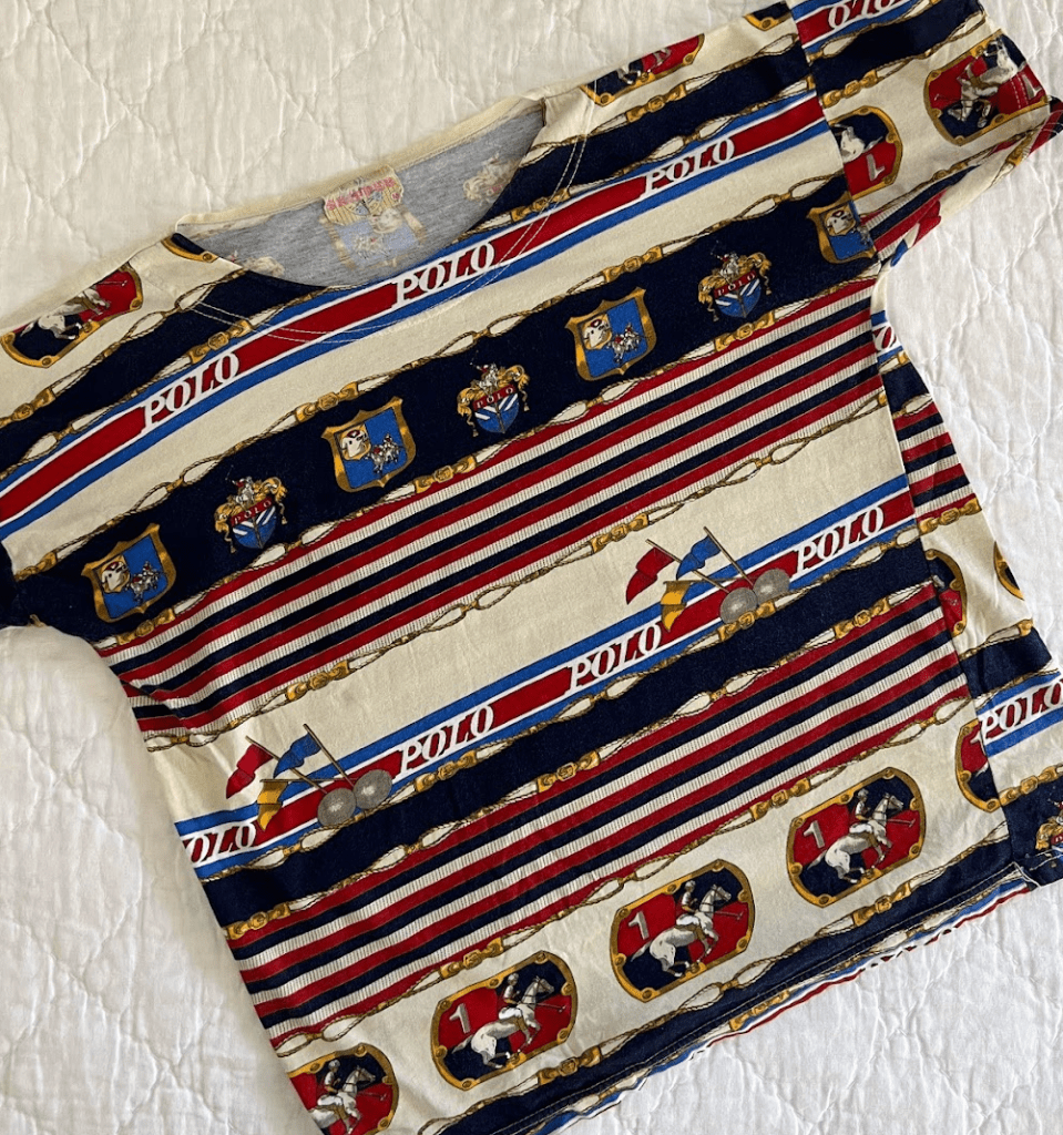 I found this while browsing through a thrift store in Amsterdam. What made it catch my eye in the first place is the refined maximalism that all of the colors and prints work together to create. This is the tee I’ve worn the most often in the past year because of how seamlessly it can be dressed up with jeans and a pair of scrappy heels or a tennis skirt and sneakers. I have yet to see a similar piece out in the wild.