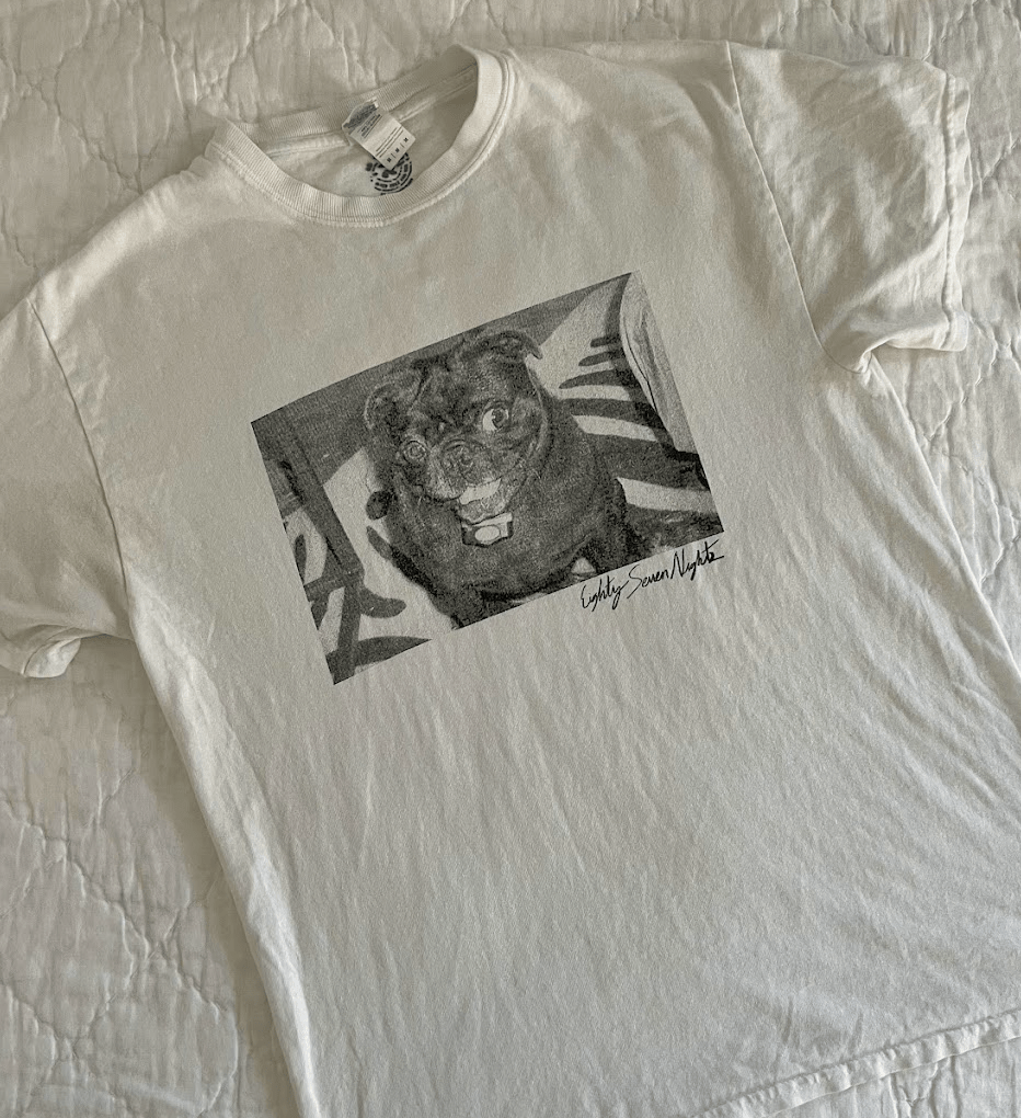 The band Eighty Seven Nights performed at Sigma Chi’s semi formal my freshman year. We all camped out on someone’s farm for a weekend, and that ended up being one of the top three trips I took in college because of how consistently fun it was. Two of my bestie boos and I got this for FREE from the band and we used to accidentally match all the time. It took me months before I realized it was a picture of a pug and not an alien. This is a potent good luck charm that is best worn on a Sunday.