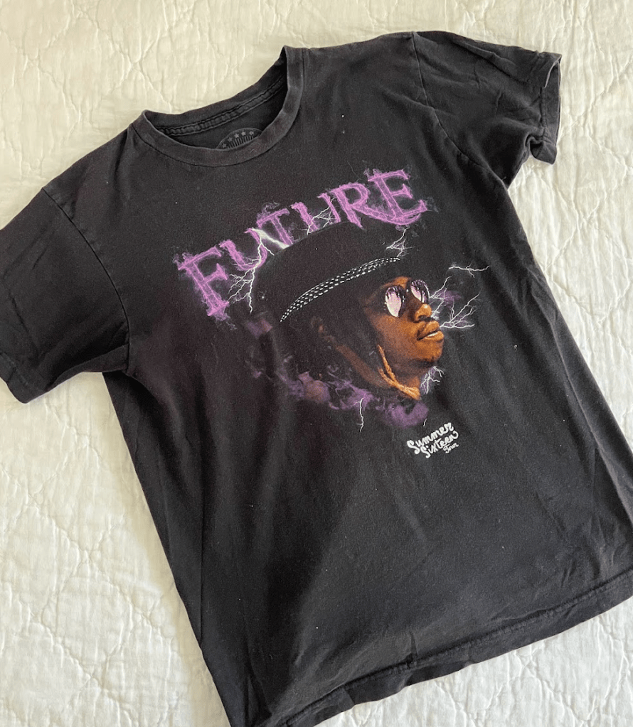 This was a Christmas gift from the former manager of my grandpa’s hair salon (shoutout Mida!!!) that transformed the way I think about gift giving. I was a huge fan of rap music in high school and she was well aware of it, so receiving this gift made me feel seen from how thoughtful it was. Because of that, this tee is saved specifically for days when I’m in my bag.