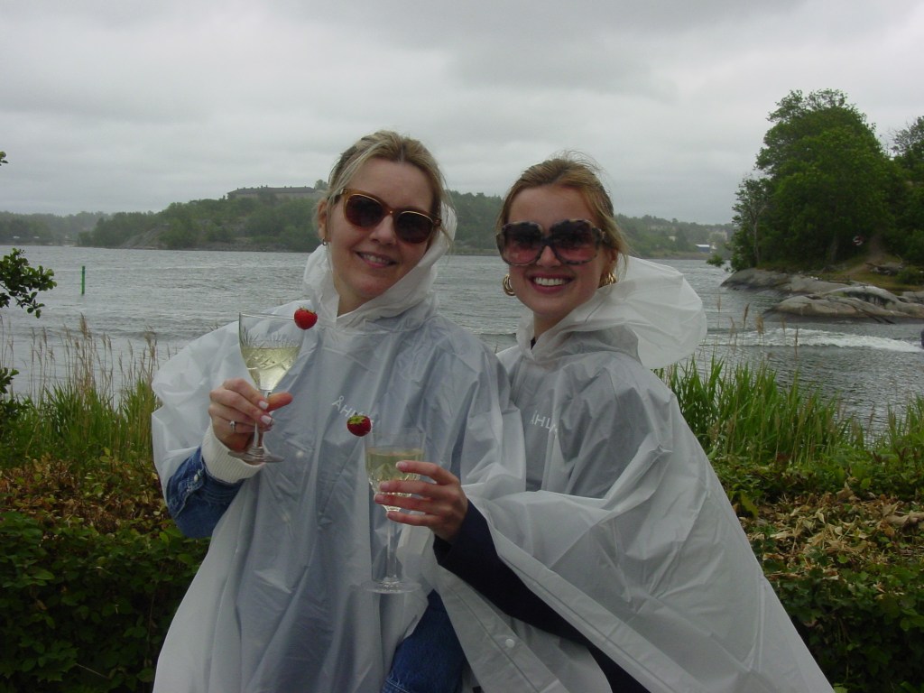 my momma & I enjoying some Sancerre on a rainy day (Swedish-style with a strawberry on the rim)