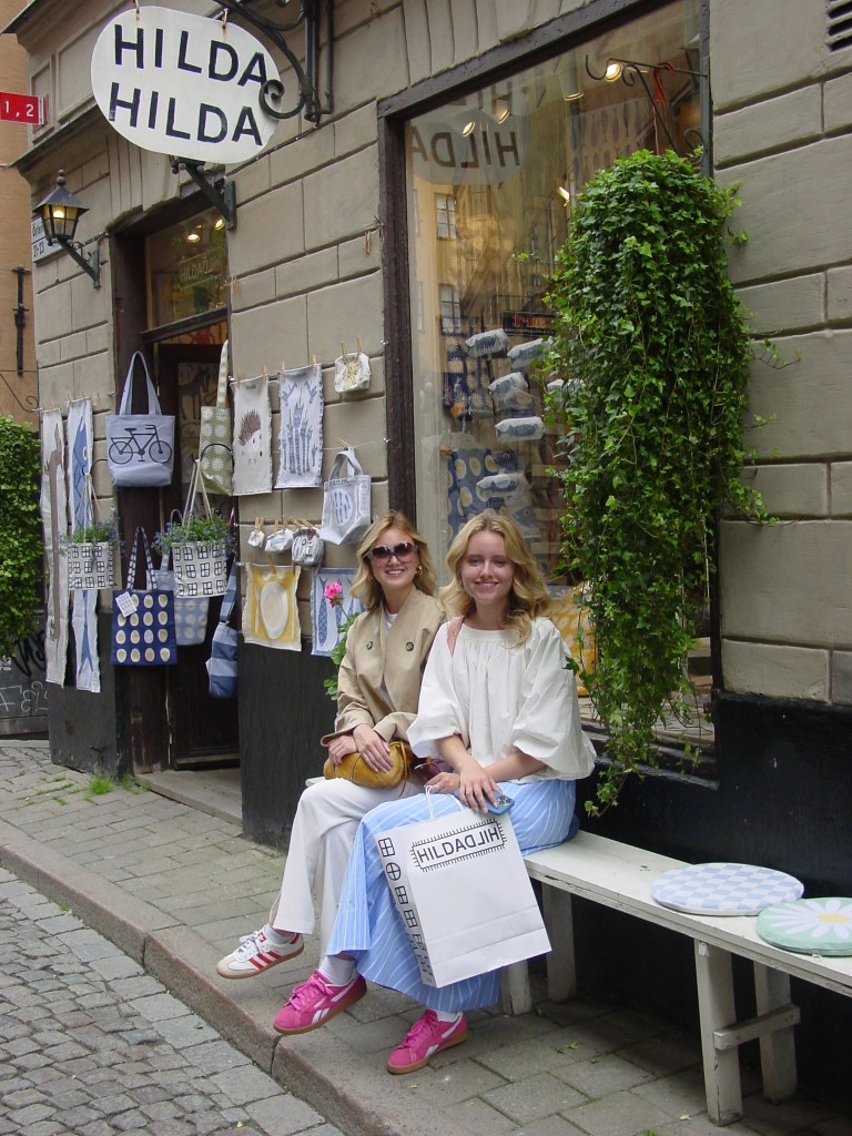 Emma & I outside of the cutest textile shop in the world, Hilda Hilda