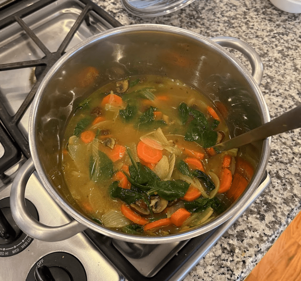 i was unfortunately sick and down for the count for the majority of my time at home, but that gave me all the more reason to get in some quality r&r. me and Emma made Jen Jones’s flu soup to build back some immunity yesterday, and it pairs perfectly with a piece of buttered sourdough.
